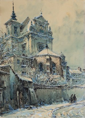 Władysław Chmieliński (Warszawa 1911 - Warszawa 1979) był malarzem związanym z Warszawą, gdzie stale mieszkał i pracował. W latach 1926-1931 studiował w warszawskiej Miejskiej Szkole Sztuk Zdobniczych i Malarstwa (dawna Klasa Rysunkowa). Wiodącym tematem jego obrazów były widoki miejskie, malowane olejno i akwarelą. W latach 1935-1938 stworzył cykl akwarel przedstawiających obiekty polskiej architektury; wśród nich, widoki Sandomierza, Krakowa, Kazimierza nad Wisłą, a także wnętrza zabytkowych kościołów czy pałaców, m.in. Zamku Królewskiego w Warszawie i Pałacu w Wilanowie. Malował także pejzaże i wiejskie sceny rodzajowe – kuligi, sanny, za...