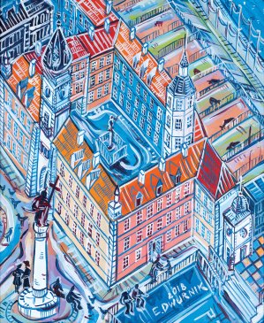 Edward Dwurnik (Radzymin 19 IV 1943 - Warszawa 28 X 2018) studiował malarstwo w ASP w Warszawie (1963-1970), jednak jako swego „mistrza“ wymienia Nikifora. Jego to prace, zobaczone po raz pierwszy w 1965, zainspirowały ówczesnego studenta III roku do narysowania pierwszych prac z cyklu „Podróże autostopem“, które kontynuował w nastepnych latach. W 1972-1978 powstawał cykl „Sportowcy“, w którym portretowane były, dodajmy - kąśliwie, typowe postaci z lat 70. Równolegle od 1975 powstawał cykl „Robotnicy“, który kulminował w okresie „Solidarności“ 1980-1981. Za prace z tego cyklu Dwurn...