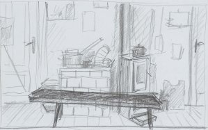 SZKIC DO OBRAZU „PIESEK DRAPIE SIĘ ZA BRAMĄ”
