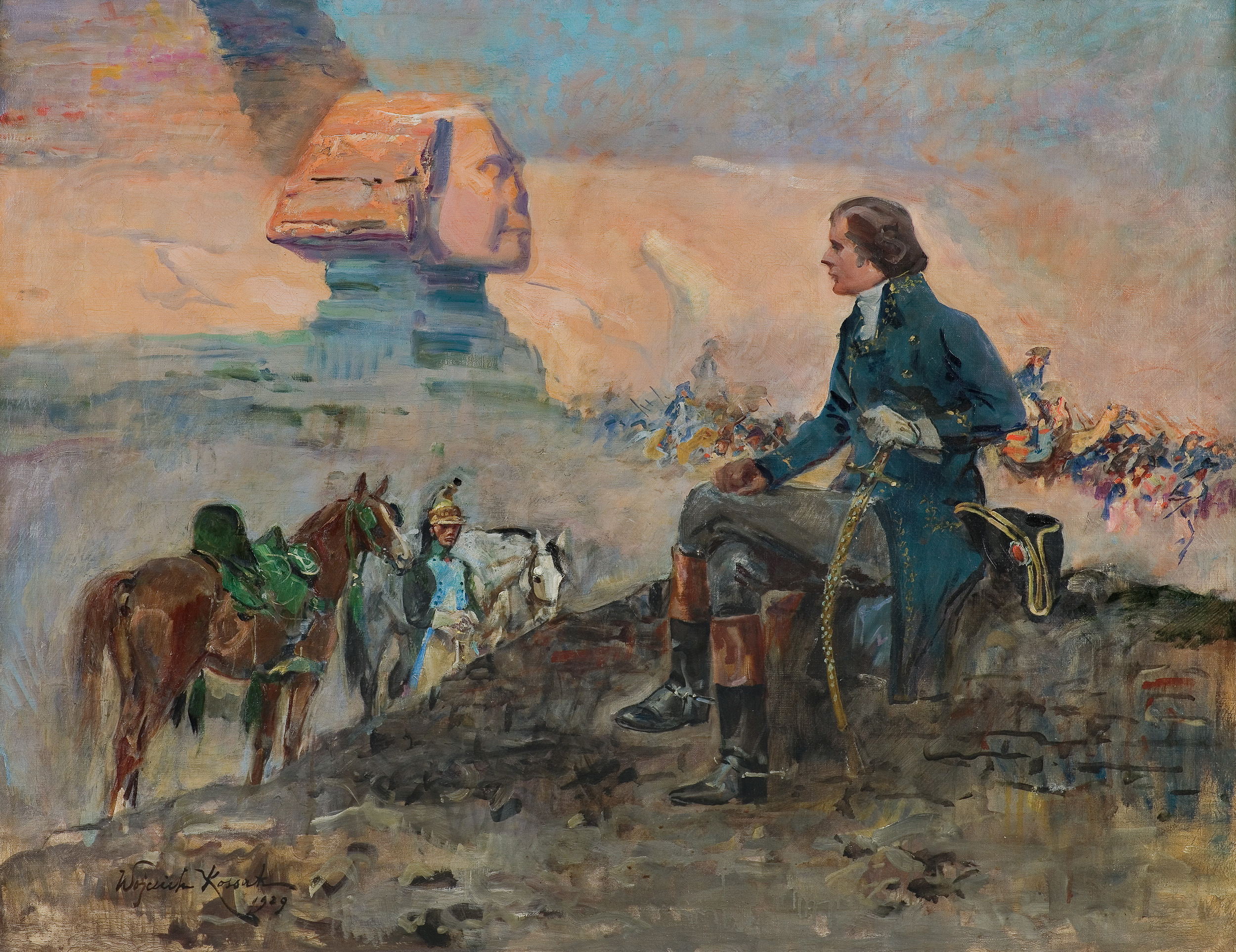 Napoleona i Sfinksa malował Wojciech Kossak kilkakrotnie, powtarzając ten motyw w nieznacznie różniących się wariantach kompozycyjnych. Sam pomysł tej...
