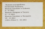 Na odwrocie, na tekturowych „plecach“ napisy i nalepki z numerami odnoszącymi się do pozycji w katalogach wystaw. Napisy: - niebieską kredką: BOHD. WILEŃSZCZYZNA; - niżej: 160; ołówkiem: F Ruszczyc | 88; - niżej czerwonym długopisem: I/123.