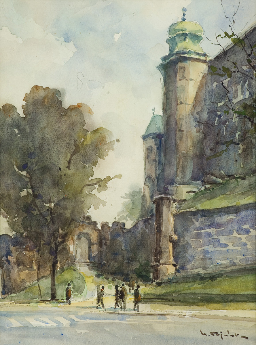 WIDOK NA WAWEL Z BRAMĄ PÓŁNOCNO-WSCHODNIĄ, KURZĄ STOPKĄ I WIEŻĄ ZYGMUNTA III