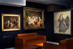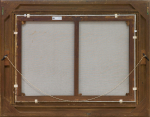 na odwrocie na górnej listwie krosna nalepka Salonu Juliana Burofa (druk, pieczęć, tusz): MAGAZYN ARTYSTYCZNY I SALON OB[...] | JULIANA BUROFA, Warszawa, Nowy Świat 47. | No 1544 Autor Jan Moniuszko | Tytuł Zaręczyny Rodzaj dzieła olej | Cena [...] Własność [...] | data 18 [...] rok