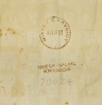 Na odwrocie centralnie dwie pieczęcie: 1. NIKIFOR | MISTRZ Z KRYNICY; 2. NIKIFOR – MALARZ | KRYNICA; poniżej ołówkiem: 100 ZŁ.