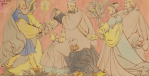 ołówek, akwarela, tempera, gwasz, tusz, papier naklejony na karton, 21 x 40,8 cm (w świetle passe-partout)