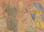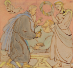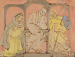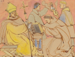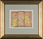 ołówek, akwarela, tempera, gwasz, tusz, papier naklejony na karton, 22,2 x 26,4 cm (w świetle passe-partout)