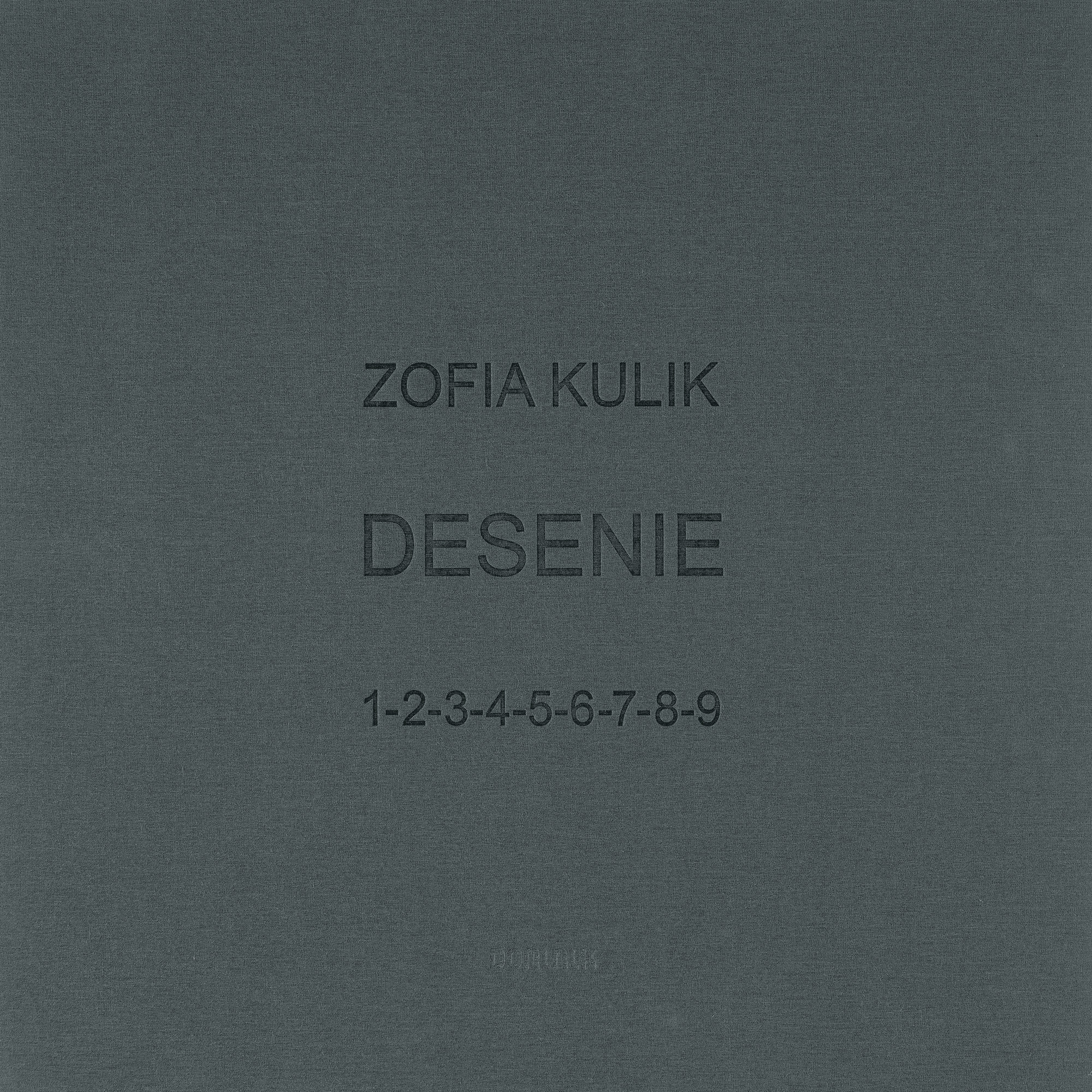 – na I str. okładki nadruk czarny: ZOFIA KULIK | DESENIE | 1-2-3-4-5-6-7-8-9, niżej wytłoczony bez farby napis DOMINIK [Adam Dominik, wydawca teki]
