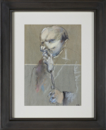 pastel, flamaster, kalka techniczna (dwa arkusze połączone na osi poziomej), naklejona na czarny karton