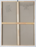 sygn. na odwr. na płótnie l.g.: JWK., p.g.: JANINA WIERUSZ KOWALSKA | „Z ZIMNEJ BIELI W GORĄCĄ CZERWIEŃ“ | AKRYL/PŁÓTNO | 2023 | 90 X 120 cm.