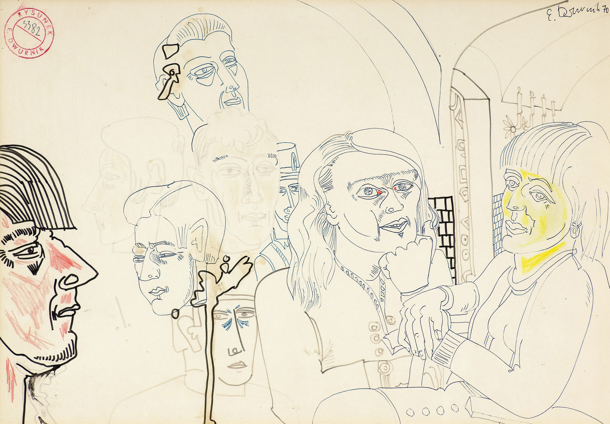 sygn. dłg. p.g.: E. Dwurnik 70, w l.d. rogu okrągła pieczęć z napisem w otoku: RYSUNEK | E. DWURNIK, w śr. oł.: 3382