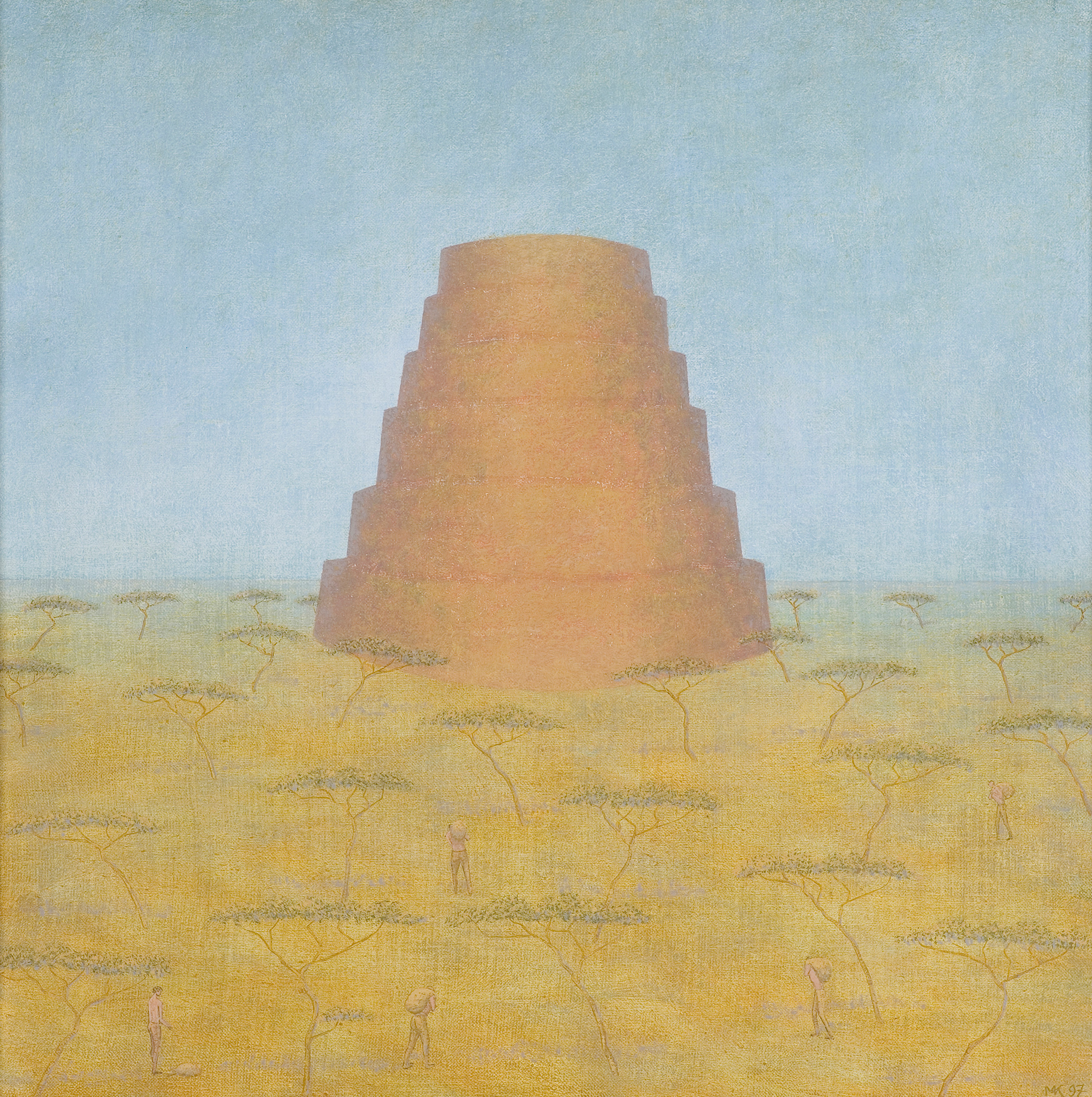 sygn. na odwr. na płótnie g.: MIKOŁAJ KASPRZYK | “WIEŻA” | OLEJ 98 | 50 x 50, niżej pieczątka zezwalająca na wywóz za granicę z podpisem