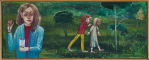 sygn. na odwr. na płótnie l.: Franciszek Maśluszczak | 1983 | acryl | tytuł: ODEJŚCIE | 0,24 x 0,61 m., p.: pieczątka zezwalająca na wywóz za granicę z podpisem, niżej napis: 305.