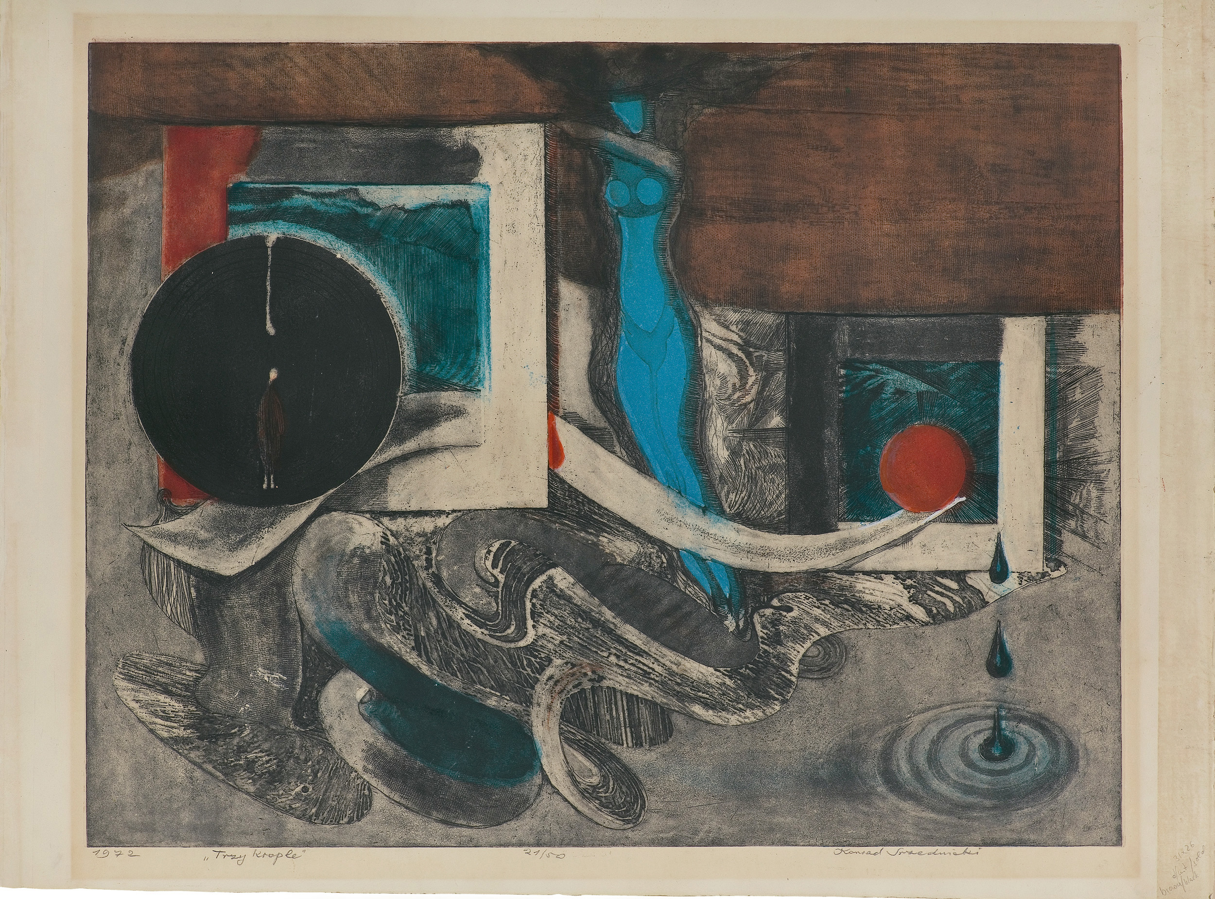 sygn. oł. pod ryc. l.: 1972 “Trzy krople”, śr.: 21/50, p.: Konrad Srzednicki