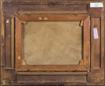 Na odwrocie, na krośnie trzy małe nalepki z wpisanymi atramentem liczbami: 328, 472, 29[.]; na dolnej listwie krosna wymiary (czarnym flamastrem): 45,5 x 60,5 cm; w l.d. narożniku krosna nieczytelna okrągła pieczęć; ponadto na górnej listwie ramy nalepka aukcyjna Agra-Art z 2007 r.