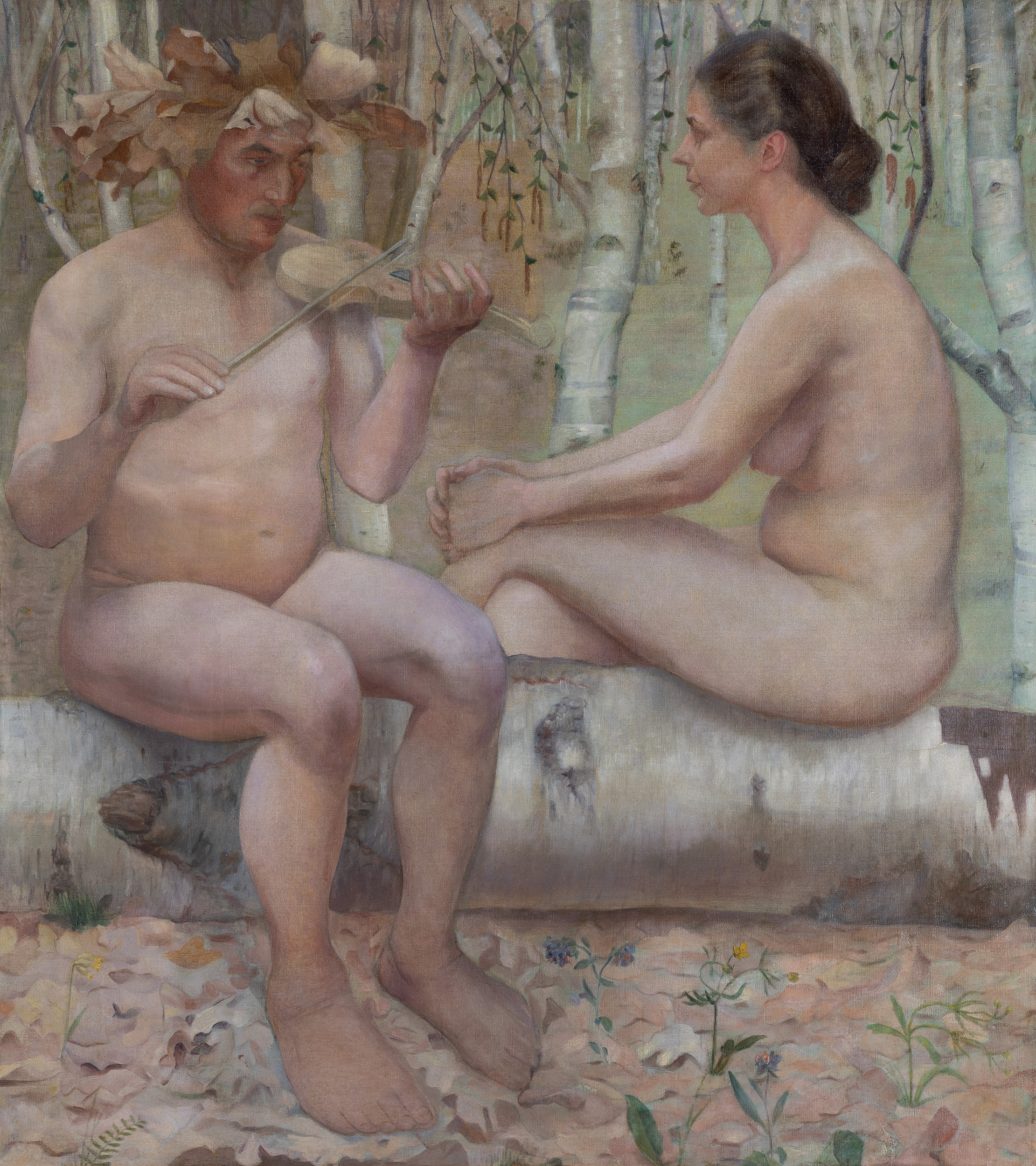 Na dolnej listwie krosien malarskich odwrotnie do kierunku kompozycji częściowo zdarta nalepka TPSP w Krakowie (druk, czarny atrament): Autor Pronaszko Zbigniew | Adres Kraków | Dzieło Pieśń wiosenna.
