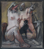 pastel, węgiel, płyta drewniana, łączona