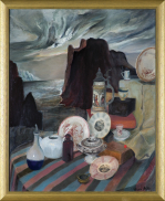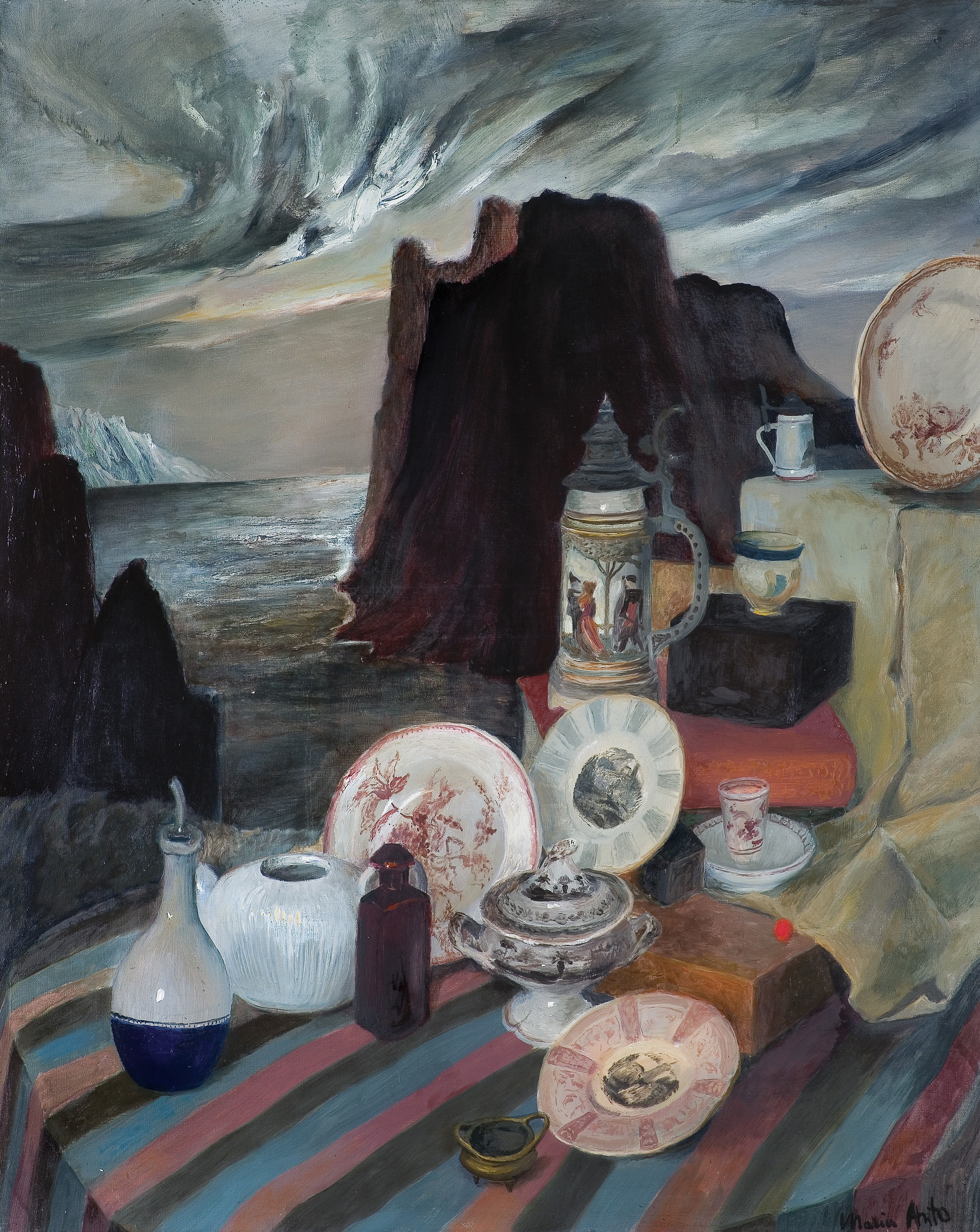 W swoim głęboko symbolicznym malarstwie Maria Anto często sięgała po gatunek martwej natury. Odchodziła w nim daleko od tradycyjnych ujęć przedmiotów, sytuując przedstawiane aranżacje w hybrydalnej, surrealnej przestrzeni – na styku wnętrza i otwartego pejzażu (zob. m.in. Martwa natura dla aniołka, ...