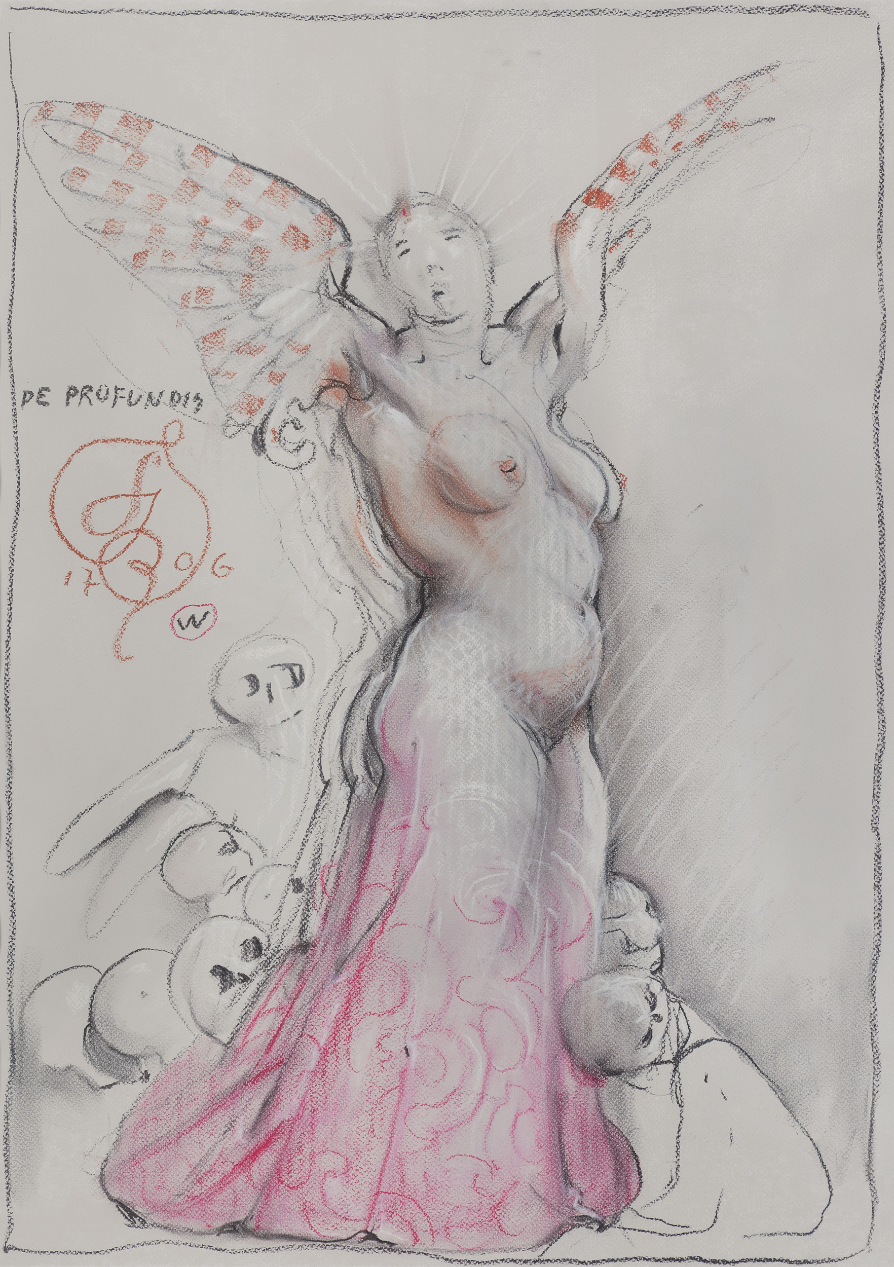 sygn. l.g. czarnym pastelem: DE PROFUNDIS, niżej brązowym: 17 FS 06, niżej czarnym w brąz. kółku: W