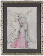 Stojąca figura z rozwiniętymi skrzydłami zamiast rąk, zazwyczaj z ptasią głową, ubrana w długą powłóczystą suknię – to częsty motyw pojawiający się na plakatach, grafikach i rysunkach Franciszka Starowieyskiego już od końca lat 60. (jedna z pierwszych wersji znalazła się na plakacie włoskiego filmu Zakochana wiedźma (reż. D. Damian...