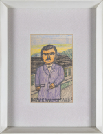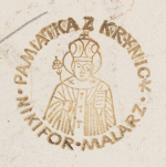 Na odwrocie centralnie okrągła pieczęć z przedstawieniem Nikifora Biskupa i napisem w otoku: PAMIĄTKA Z KRYNICY * NIKIFOR MALARZ *; poniżej (ołówkiem): 200 ZŁ; ponadto u góry notatki ramiarskie