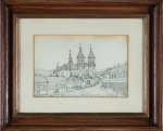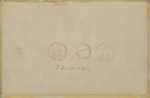 na odwrocie centralnie trzy pieczęcie: 1. okrągła: NIKIFOR, z napisem w otoku: MISTRZ Z KRYNICY; 2. dwukrotnie okrągła z przedstawieniem Nikifora Biskupa i napisem w otoku: PAMIĄTKA Z KRYNICY * NIKIFOR MALARZ *; poniżej ołówkiem: 70 - 000 ZŁ; przy górnej krawędzi (ołówek): K 4224, przy lewej krawędzi (ołówek): KT 1942B